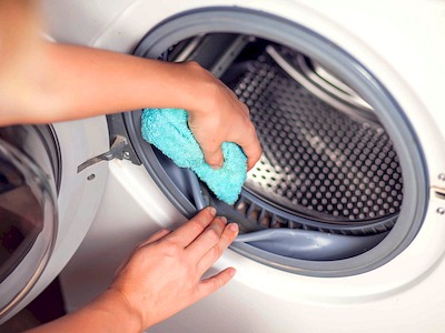 1. Очистка резинок и уплотнителей. Проверьте резинки на дверце и внутри барабана. Удалите накопившуюся грязь и влагу с помощью мягкой ткани и раствора уксуса. Обязательно высушите концы резинок после очистки.